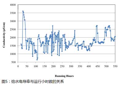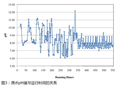 在此任務期間,活性炭綜合處理系統每天進行操作和測試,每天監測和記錄pH,溫度,飼料壓力,流速,飼料電導率和濁度等操作參數。如圖2所示,系統給水溫度在冬季和夏季分別在24.90和41.30℃之間。如圖3所示,此期間給水的pH在6.06和12.17之間。進料濁度值和濾液濁度值分別在6.59-429NTU和0.09-17.4NTU,如圖4所示。濁度測量單元是過濾器制造商推薦的濁度濁度單位(NTU)。進水的電導率也進行了監測,發現在監測期間(圖5)所示的電導率在79.9和3610μS/ cm之間。在實驗測試程序開始時,試驗系統在可變操作條件下進行測試,以確定系統的最佳操作條件。進水的電導率也進行了監測,發現在監測期間(圖5)所示的電導率在79.9和3610μS/ cm之間。在實驗測試程序開始時,試驗系統在可變操作條件下進行測試,以確定系統的最佳操作條件。進水的電導率也進行了監測,發現在監測期間(圖5)所示的電導率在79.9和3610μS/ cm之間。在實驗測試程序開始時,試驗系統在可變操作條件下進行測試,以確定系統的最佳操作條件。