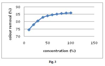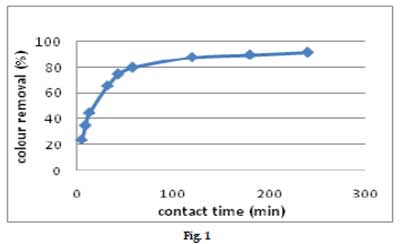 初始濃度對顏色去除的影響如圖3所示。從圖中可以明顯看出,在初始階段,顏色去除是快速的。此外,對于相同的平衡時間,對于初始濃度的較大值,顏色去除率較高,或者較低濃度的吸附百分比越多,并且隨著初始濃度的增加而降低。這可能是由于以下事實:對于固定的活性炭劑量,總有效吸附位點受到限制,從而吸附幾乎相同量的吸附物,從而導致吸附物的吸收百分比降低,相應于初始吸附物濃度的增加?;钚蕴吭?小時內達到約97%的顏色去除。